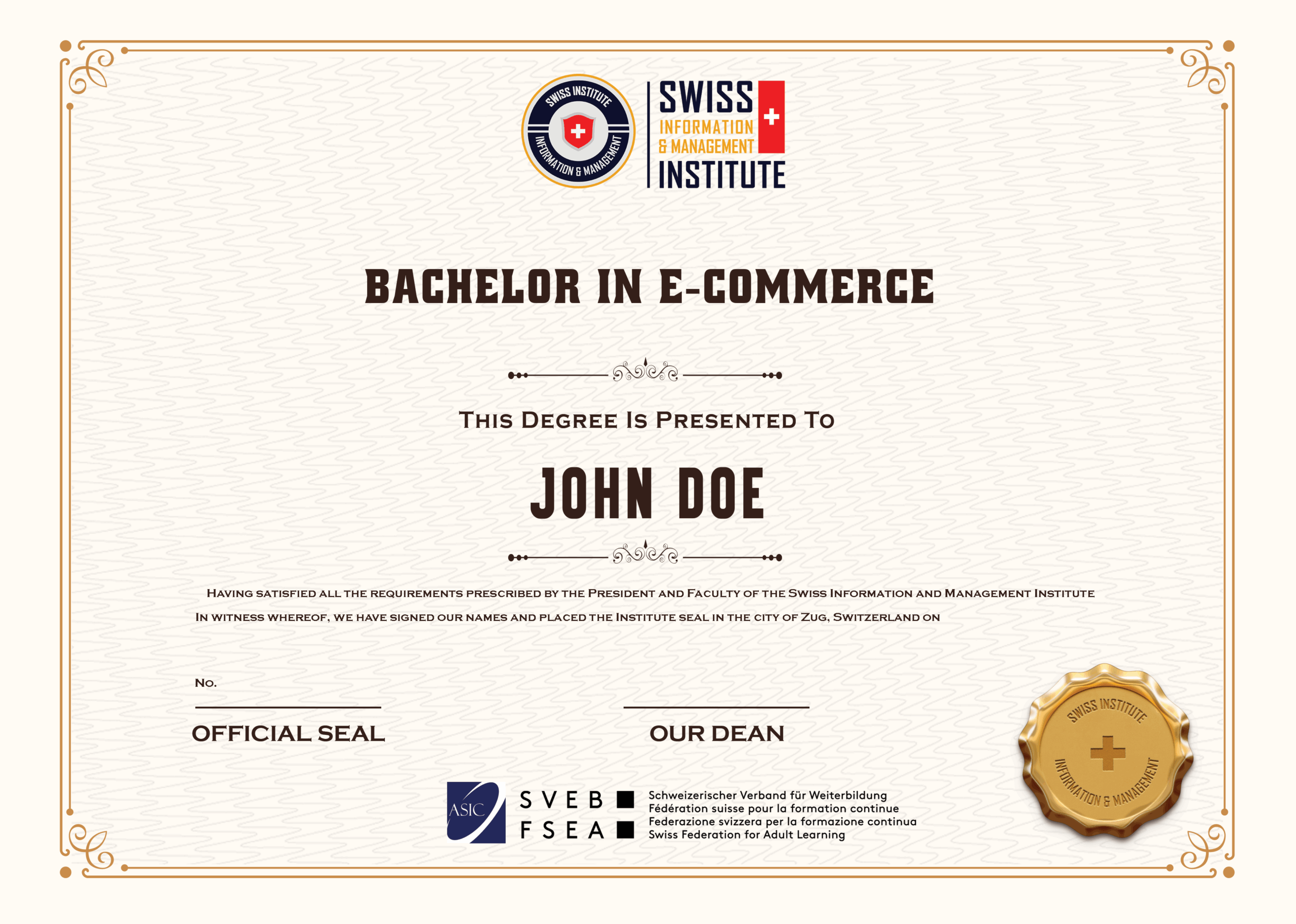 - Bachelor in e-Commerce – cấp bởi SIMI Swiss (Thụy Sĩ)