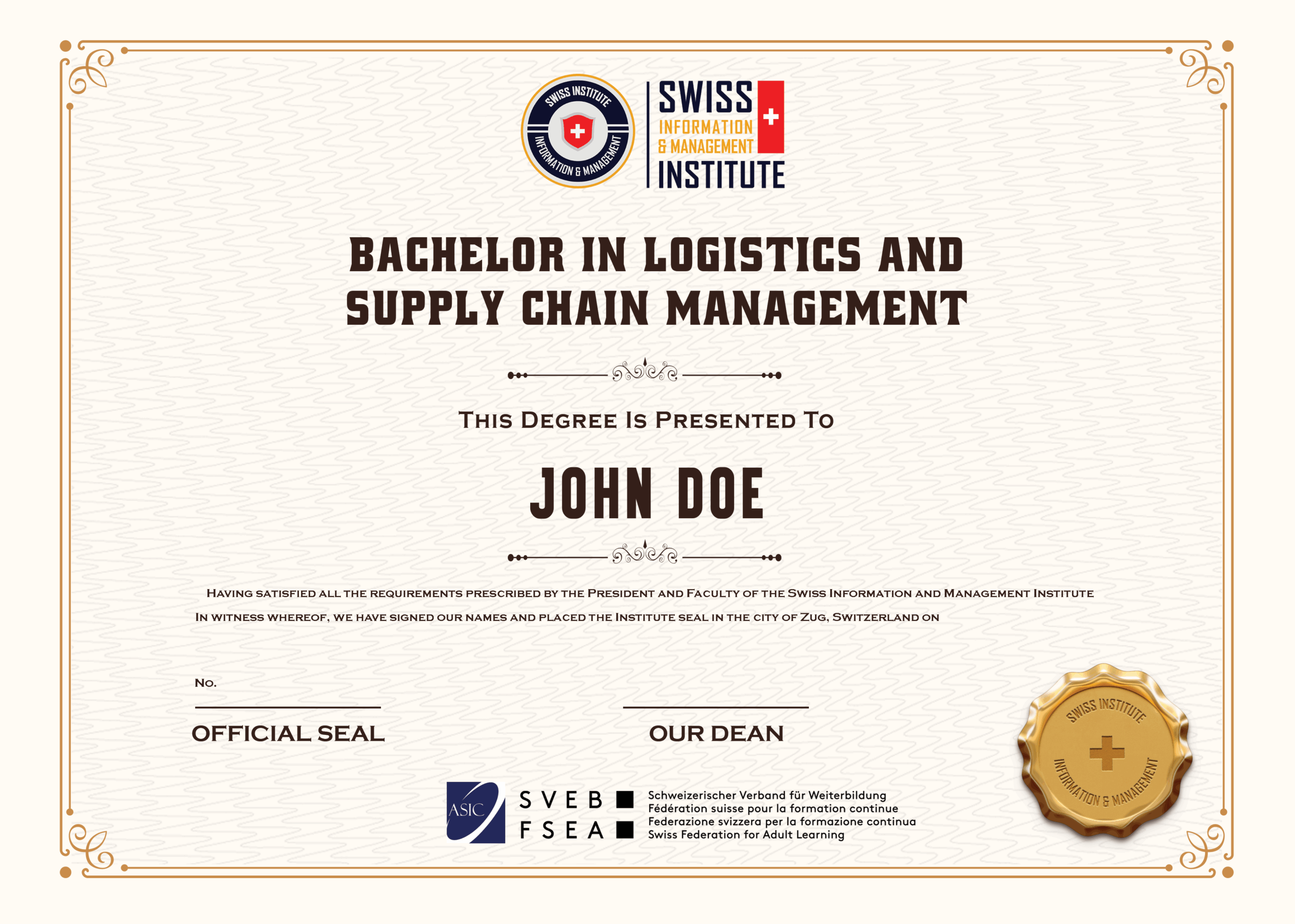 - Bachelor in Logistics & Supply Chain Management – cấp bởi SIMI Swiss (Thụy Sĩ)
