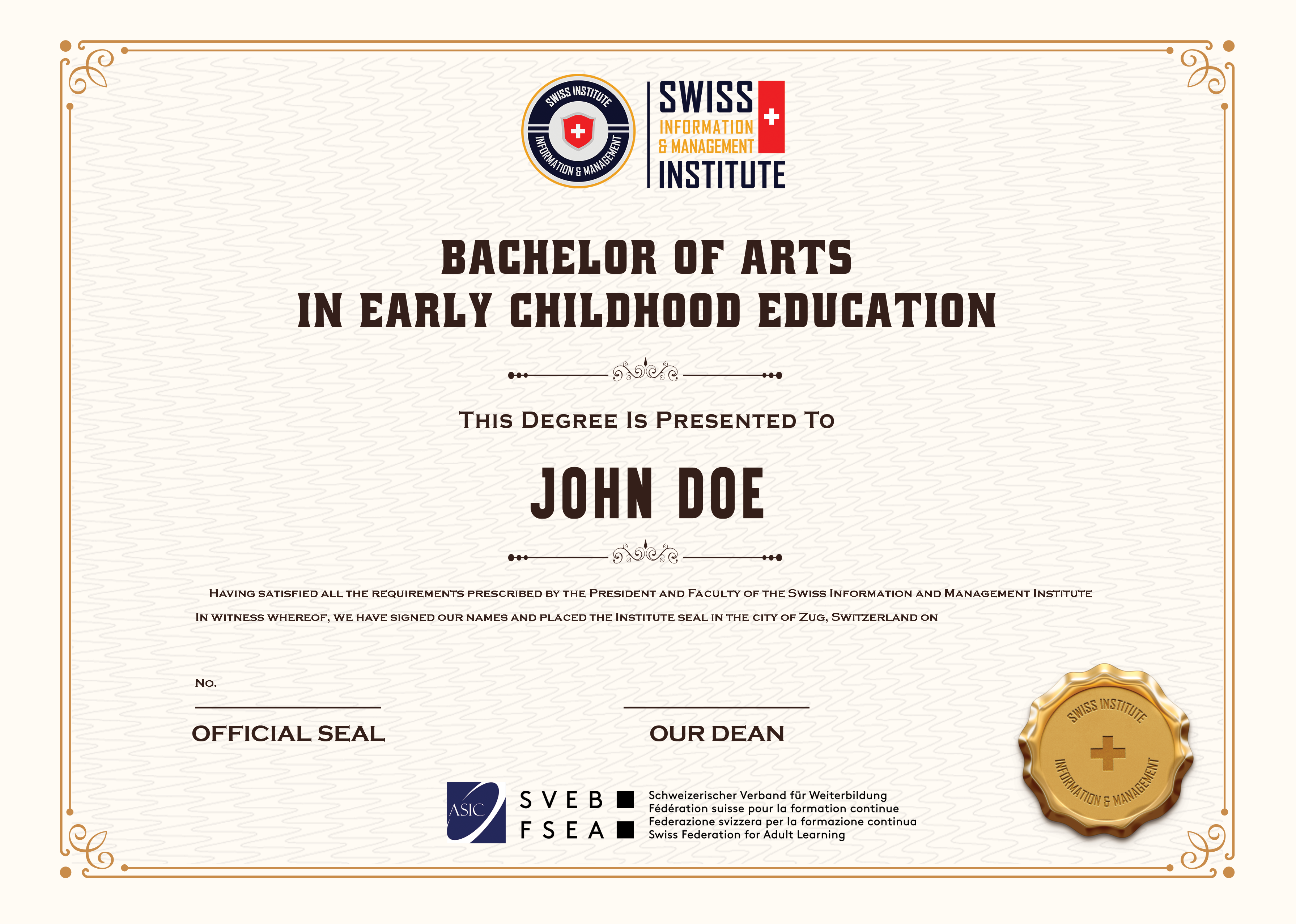- Bachelor of Arts in Early Childhood Education – cấp bởi SIMI Swiss (Thụy Sĩ)